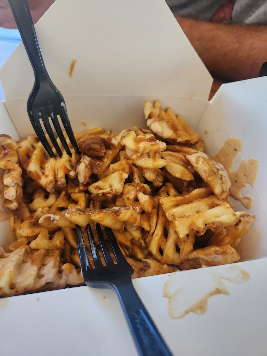 First time. Clean, nice, friendly. Guy gave me a rundown on what people like which was good. The spicy sauce was better than expected. Curt sauce yummy. I had teriyaki chicken. Plenty of chicken. I will be back for round 2 and possible more