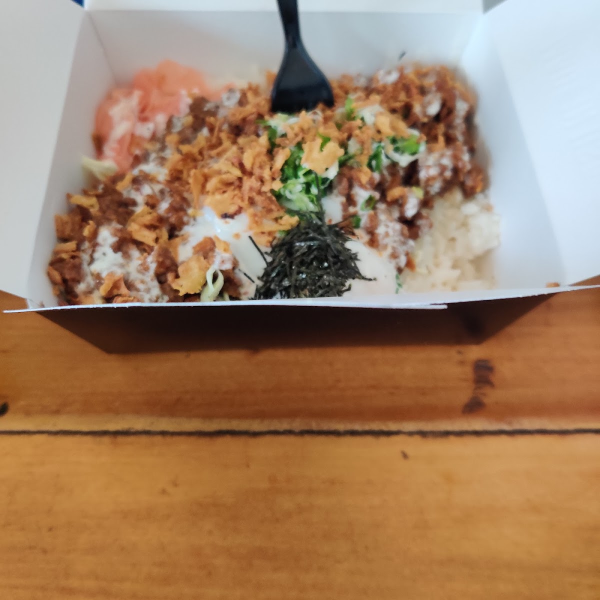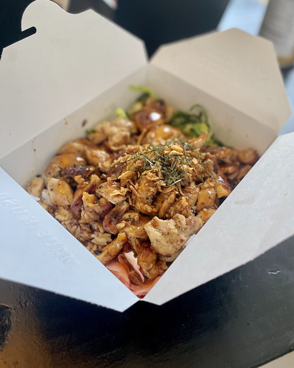 With over 500 very positive reviews, I doubt I have much to add. Don Japanese Kitchen is an eclectic, small restaurant that fills quickly. The staff are really friendly, always so nice. Don serves Japanese cuisine offering chicken & seafood dishes, plus sashimi & rice bowls. We ordered Don Chicken, Nan Ban (giant popcorn chicken), N.Y. Strip, and Torch Salmon. All orders were served in a to-go box on a bed of steamed sticky rice with cabbage and pickled ginger. Our party ordered a side of Don Fries, waffle cut fries topped with Don’s house-made teriyaki sauce and spicy mayo. The quality is consistently very good and bottled water is free. Highly recommend.